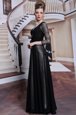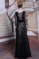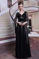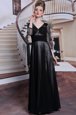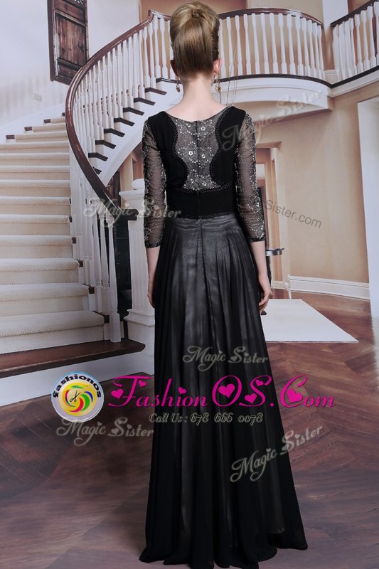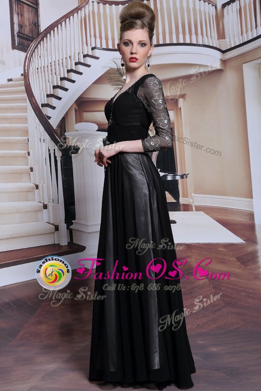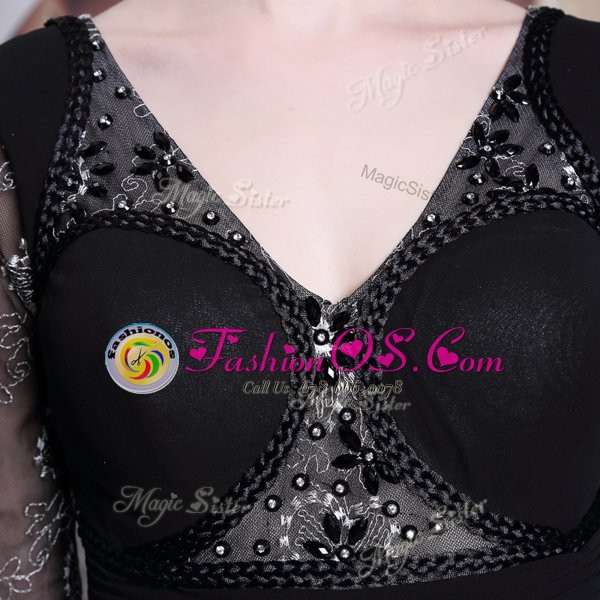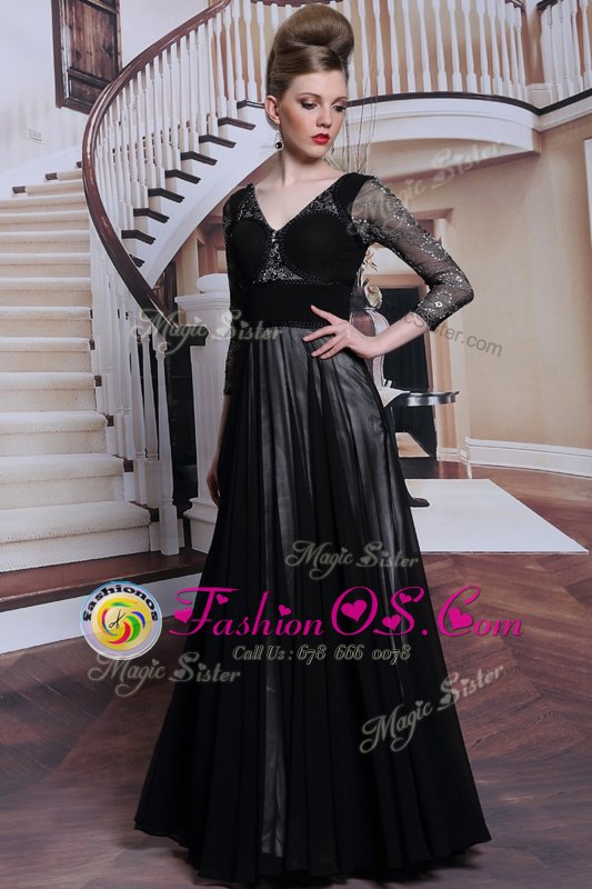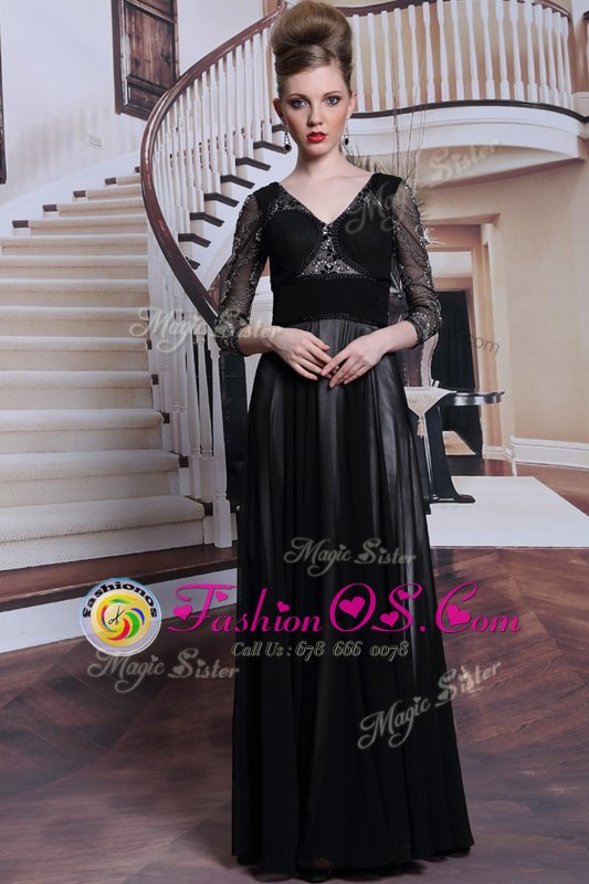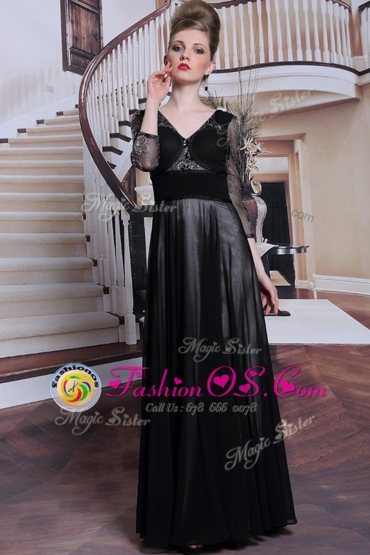 Black Chiffon Zipper V-neck 3|4 Length Sleeve Floor Length Beading