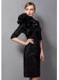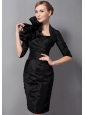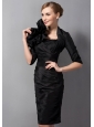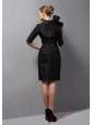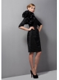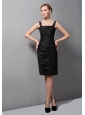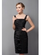 Black Column Mother Of The Bride Dress Straps Ruch Mini-length Taffeta