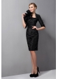 Home >  Special Occasion Dresses >  Mother of the Bride Dresses > Black Column Mother Of The Bride Dress Straps Ruch Mini-length Taffeta