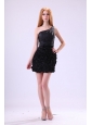 Black Column One Shoulder Sequined Prom Dress with Ruffles