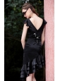 Home >  Prom Dresses >  Discount Prom Dresses > Black Column / Sheath V-neck Asymmetrical Taffeta Beading and Appliques Prom / Homecoming Dress