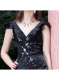 The most hot and modern new style in this year. This one would make a great addition to any wardrobe. It features a nice V neck, flutter sleeves and gorgeous beaded applique accents down the front. The black satin skirt features delicate embroidery down to the hips and a asymmetrical hem with layers of ruffles. Choose from a variety of luxurious fabrics and beautiful styles in the color you want and the size that suits your figure. You'll dazzle your date and your classmates and receive a pile of compliments when you find the prom dress of your dreams.