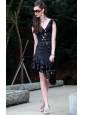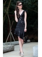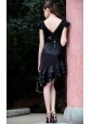 Black Column / Sheath V-neck Asymmetrical Taffeta Beading and Appliques Prom / Homecoming Dress