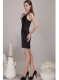 Black Column / Sheath V-neck Mini-length Satin Pleats Prom Dress