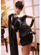 Bold and mysterious characteristics are the highlights of this super mini-skirt! This strapless black one features shimmering beading as shining star. If you have enough confidence in your figure, especially your slender legs, this one is your best choice. A soft, glittering fabric demontable attached in the back to cover you hips when you bow.
