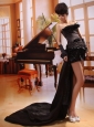 Black Column / Sheath Watteau Organza Strapless Beading Prom Dress Custom Made