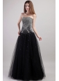 Black Column Strapless Floor-length Net Beading Prom / Celebrity Dress