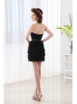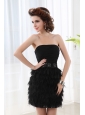 Black Column Strapless Sleeveless Mini-lengthProm Dress with Beading and Ruching