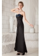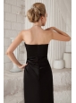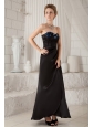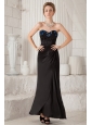 Black Column Sweetheart Ankle-length Taffeta Appliques Prom Dress