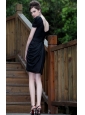 Home >  Prom Dresses >  Discount Prom Dresses > Black Column V-neck Mini-length Taffeta Beading Prom Dress