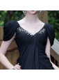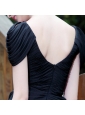 Elegent and flattering!The cap sleeves features this black prom dress.Crystal and sequins decorated the v-line.The casual pleats bodice adorns your slim build.The simple zipper up back finishes the look.You can show your slender legs when you wear this short dress.
