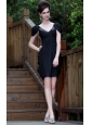 Black Column V-neck Mini-length Taffeta Beading Prom Dress