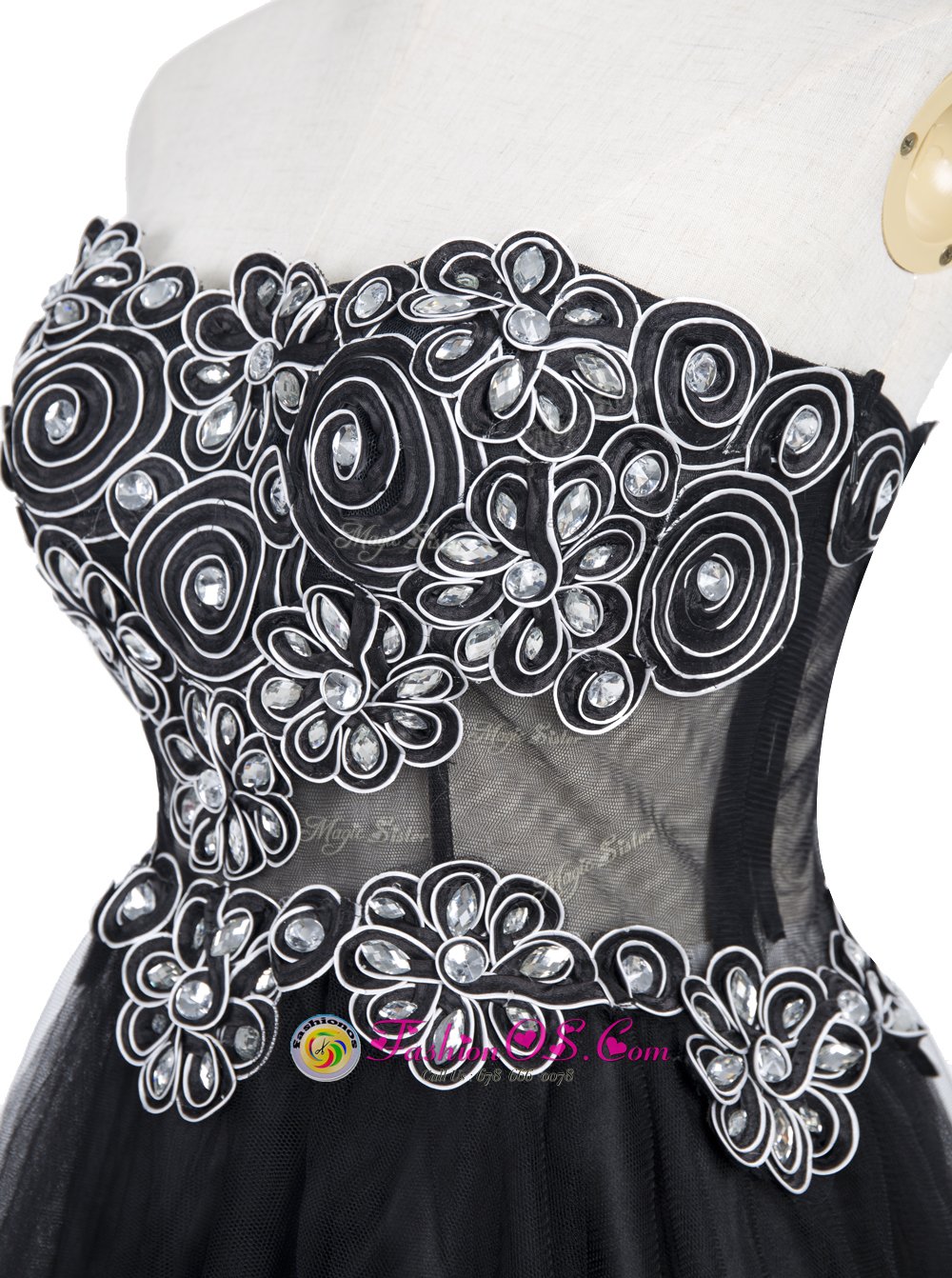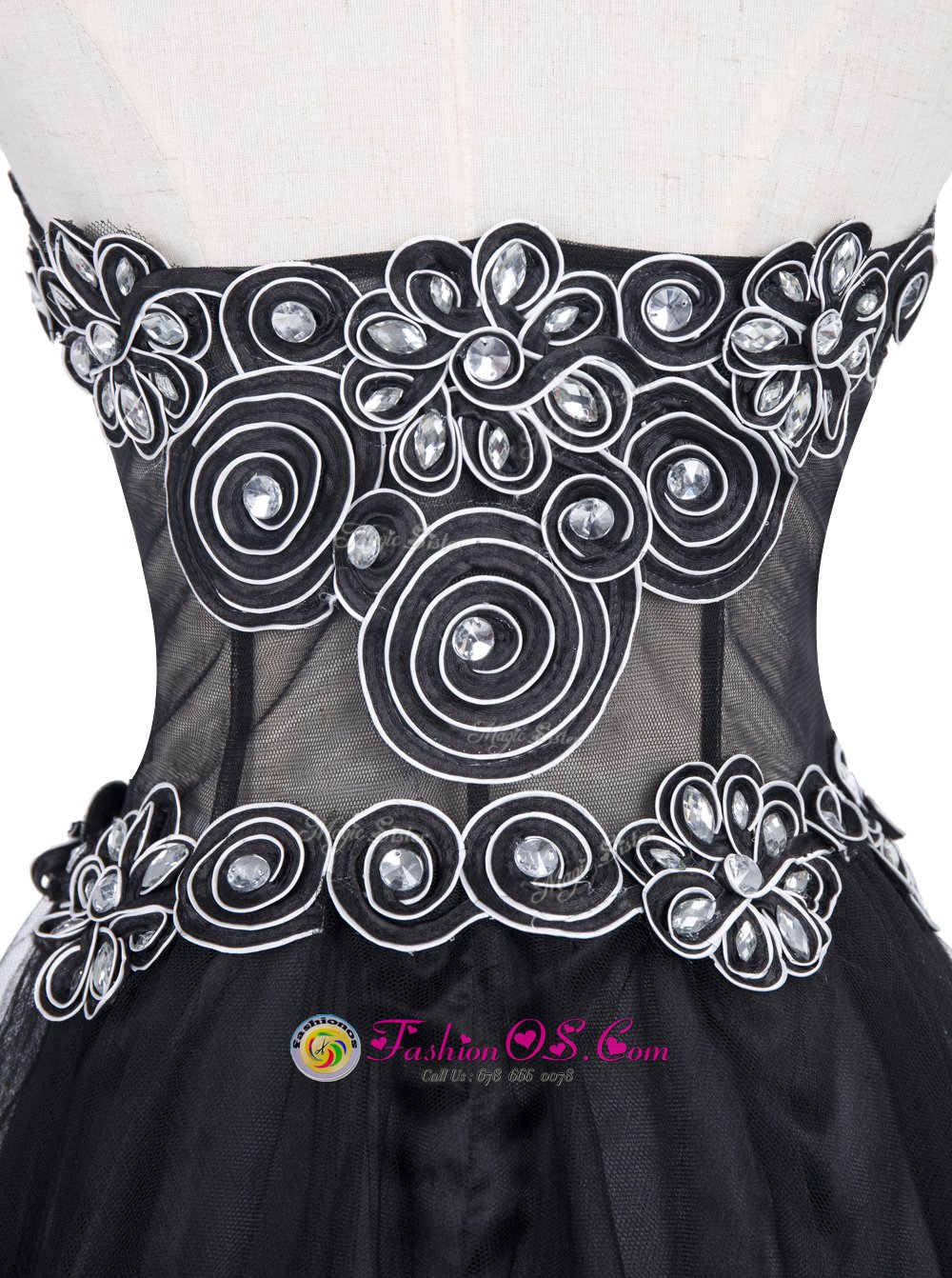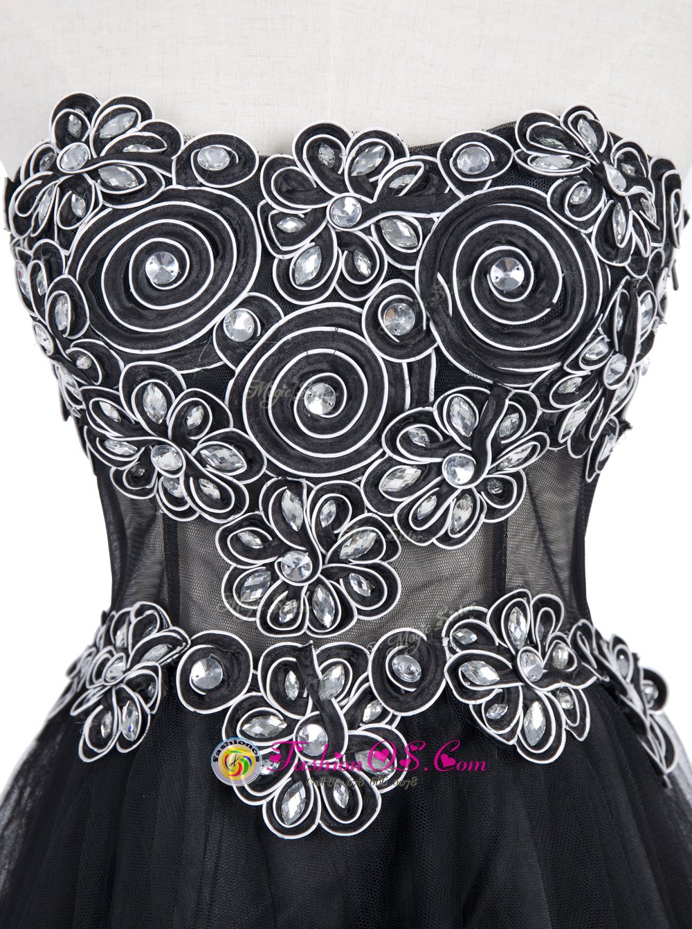 Black Dress for Prom Prom and For with Appliques Sweetheart Sleeveless Zipper