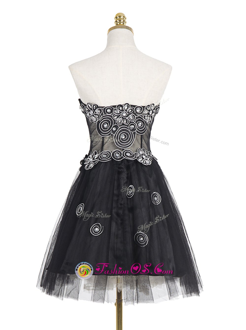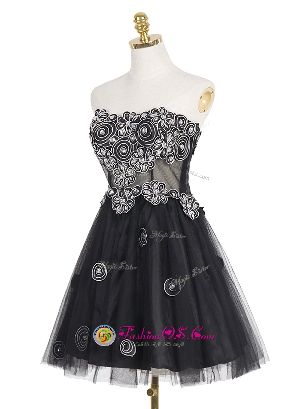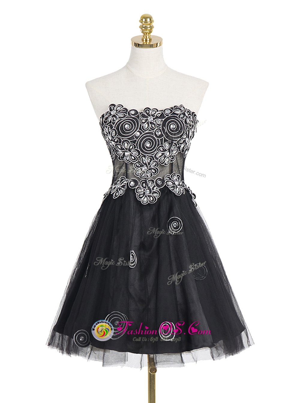 Black Dress for Prom Prom and For with Appliques Sweetheart Sleeveless Zipper