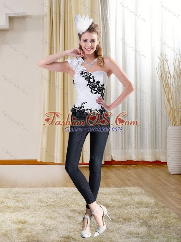 Black Embroidery Sweetheart White Corset with One Shoulder