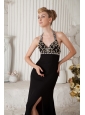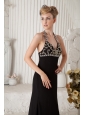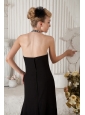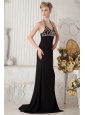 Black Empire Halter Beading Prom Dress Brush Train Chiffon