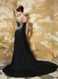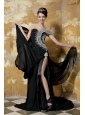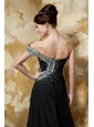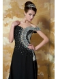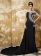 Home >  Prom Dresses >  Cheap Prom Dresses > Black Empire One Shoulder Court Train Elastic Woven Satin Beading Prom / Celebrity Dress