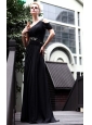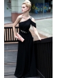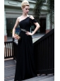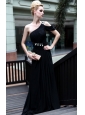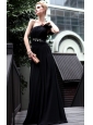 Black Empire One Shoulder Floor-length Chiffon Beading Prom Dress