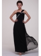 Black Empire One Shoulder Prom Dress with Beading Ankle-length