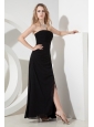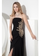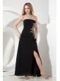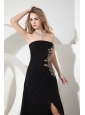 Black Empire Strapless Prom Dress Chiffon Apliques Ankle-length