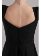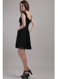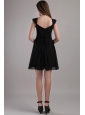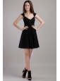 This black mini-length bridemaid dress has all the elements to make it a classic. The dress features fashionable straps and a sexy V-neck which add interest to the bust. Exquisite ruching accents your waist and gives a slimmer apperance.Soft chiffon mini-skirt flows freely to the knee. A zipper up back completes the whole look. Both elegant and snappy!