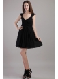 Black Empire V-neck Mini-length Chiffon Bridesmaid Dress