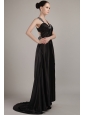 Home >  Prom Dresses >  Cheap Prom Dresses > Black Empire V-neck Sweep / Brush Elastic Woven Satin Beading Prom Dress