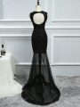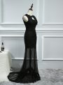 Black Evening Party Dresses Scoop Sleeveless Brush Train Backless
