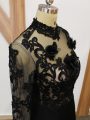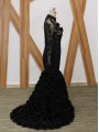 Home >  Special Occasion Dresses >  Elegant Mother of the Bride Dresses > Black Fabric With Rolling Flowers Backless Mother Of The Bride Dress Long Sleeves Brush Train Beading and Lace and Appliques and Hand Made Flower