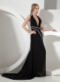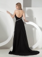 Black Halter High-Slit Prom / Evening Dress With Court Train For Custom Made