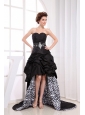 fashionos.com has a glamorous collection of the best 2013 prom gowns and dresses. This elegant creation is just one of the many designer prom dresses we carry but it is oh so special. A strapless high low style prom gown with a flattering style features a sweetheart neckline and skirt decorated with pick ups and zebra print. Sparkling beadwork decorates the waist.