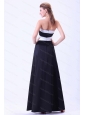 Create your own modern day fairy tale in this stunning black and white prom dress. It features a strapless bodice with a straight neckline. The ruched waistband with a broach in the middle contours your curve. The floor length skirt adds the charm. A hidden zipper makes for easy off and on and secures the dress in place. A luxurious prom dress perfect for a girls who are longing for a royal party.