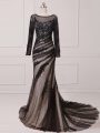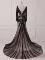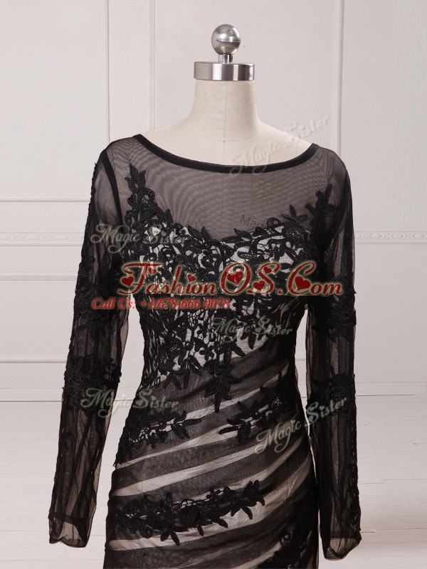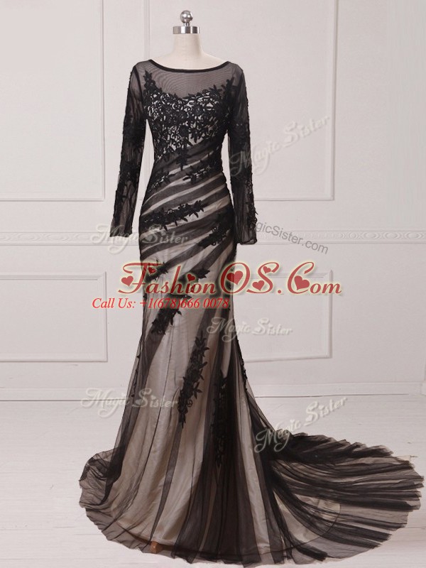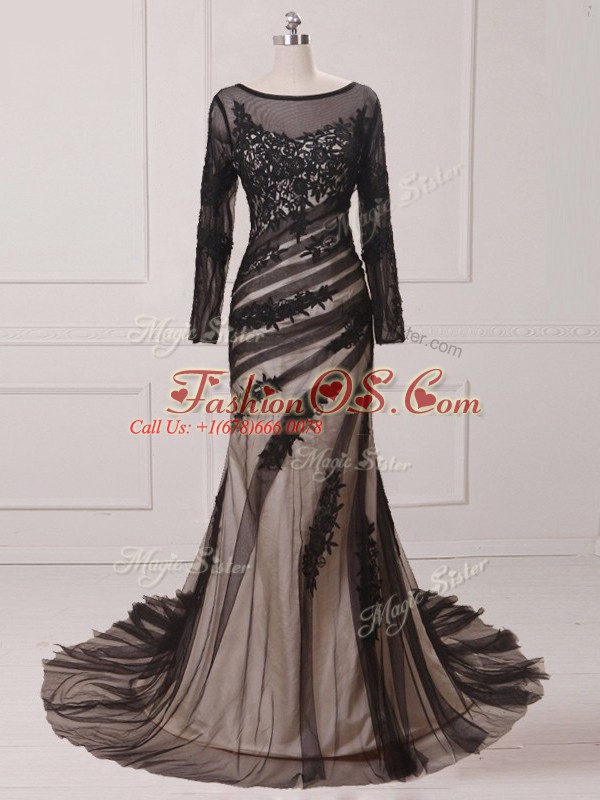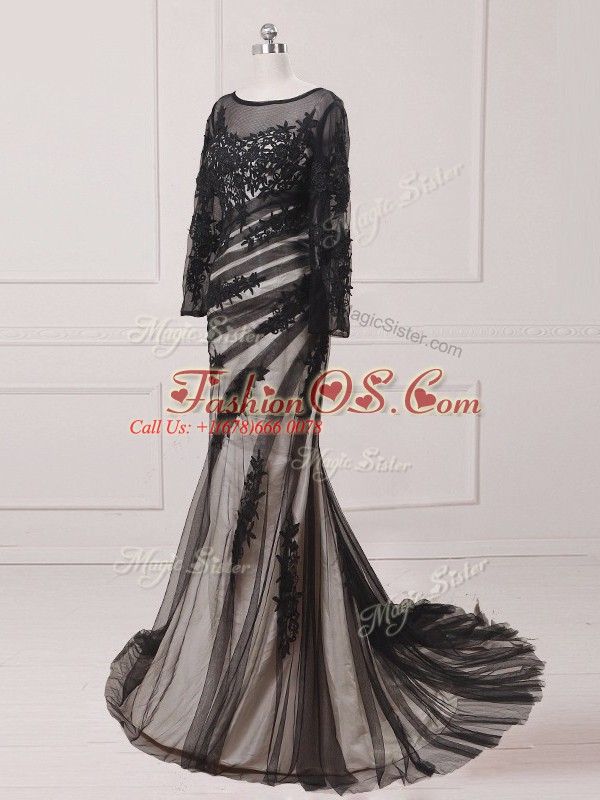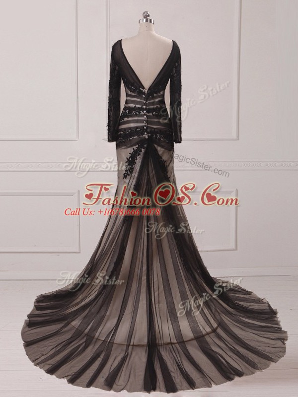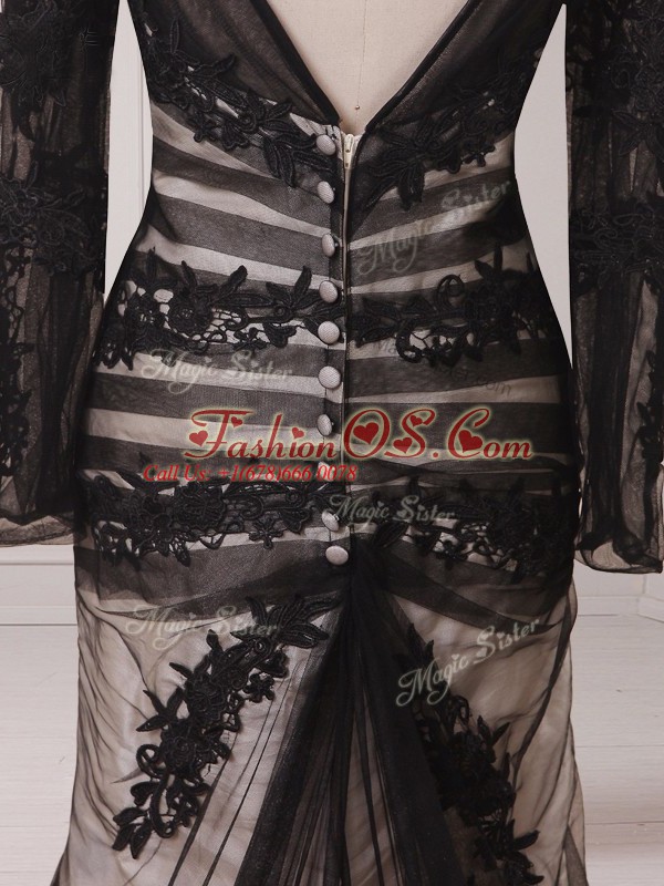 Black Long Sleeves Brush Train Lace and Appliques Mother Of The Bride Dress