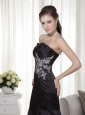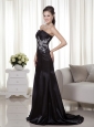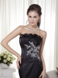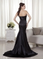 Home >  Prom Dresses >  New Arrivals > Black Mermaid Strapless Brush Train Satin Appliques Prom Dress