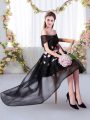 Black Off The Shoulder Appliques Quinceanera Court Dresses Short Sleeves