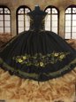 Black Off The Shoulder Neckline Beading and Embroidery and Ruffled Layers 15th Birthday Dress Sleeveless Lace Up