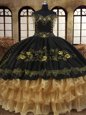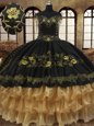 Home >  Quinceanera Dresses >  Luxurious Quinceanera Dresses > Black Off The Shoulder Neckline Beading and Embroidery and Ruffled Layers 15th Birthday Dress Sleeveless Lace Up