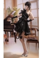 Black One Shoulder A-line Mini-length Hand Made Flowers Stylish Customize Prom Gowns