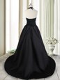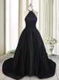 Black Prom Dress Halter Top Sleeveless Brush Train Lace Up