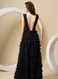 Black Ruffled Layers For V-neck Prom Dress