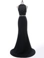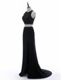 Black Scoop Side Zipper Beading and Lace Formal Evening Gowns Brush Train Sleeveless