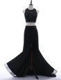Home >  Evening Dresses > Black Scoop Side Zipper Beading and Lace Formal Evening Gowns Brush Train Sleeveless