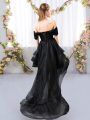 Home >  Bridesmaid Dresses >  Bridesmaid Dresses 2019 > Black Short Sleeves Lace and Ruffled Layers High Low Bridesmaid Dress