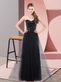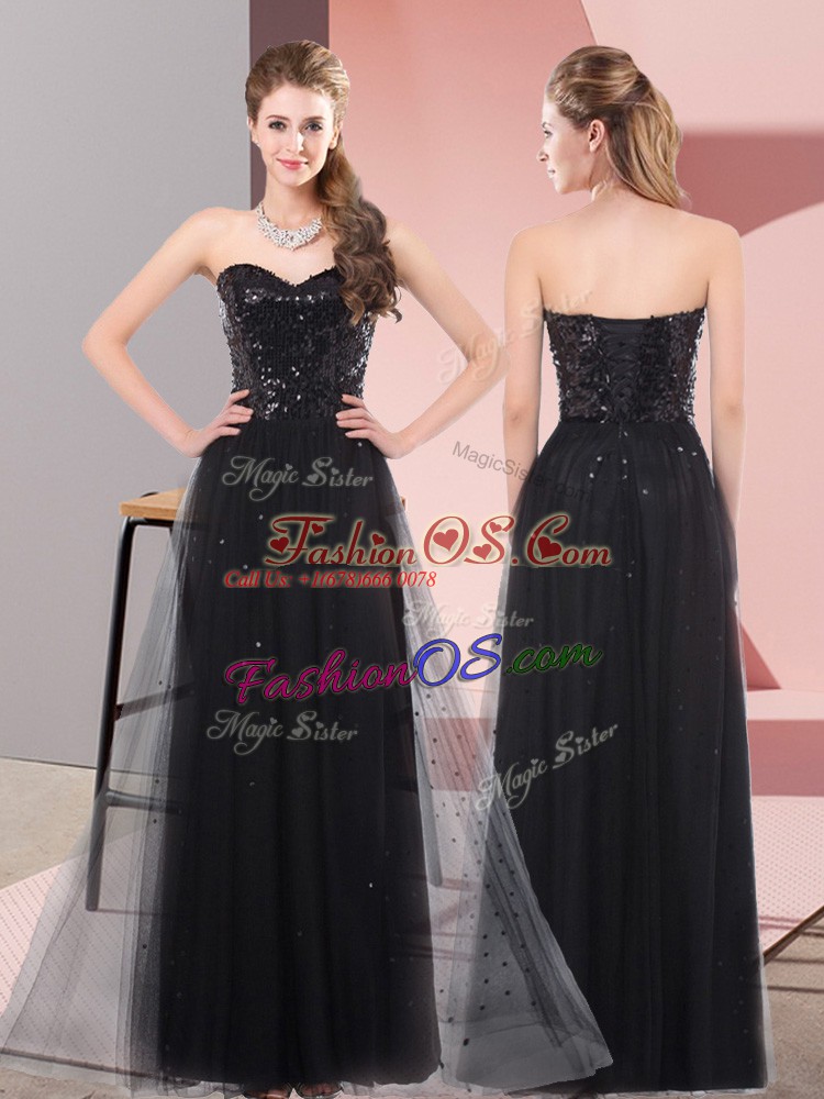 Black Sleeveless Floor Length Sequins Lace Up Dress for Prom