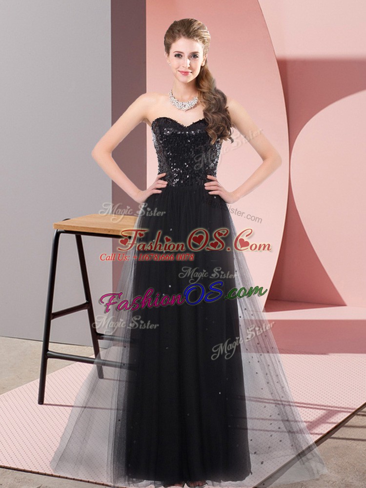 Home >  Prom Dresses >  Fashionable Prom Dresses > Black Sleeveless Floor Length Sequins Lace Up Dress for Prom