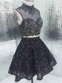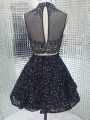 Home >  Special Occasion Dresses >  Little Black Dresses > Black Sleeveless Mini Length Beading and Lace and Appliques Backless Evening Dress