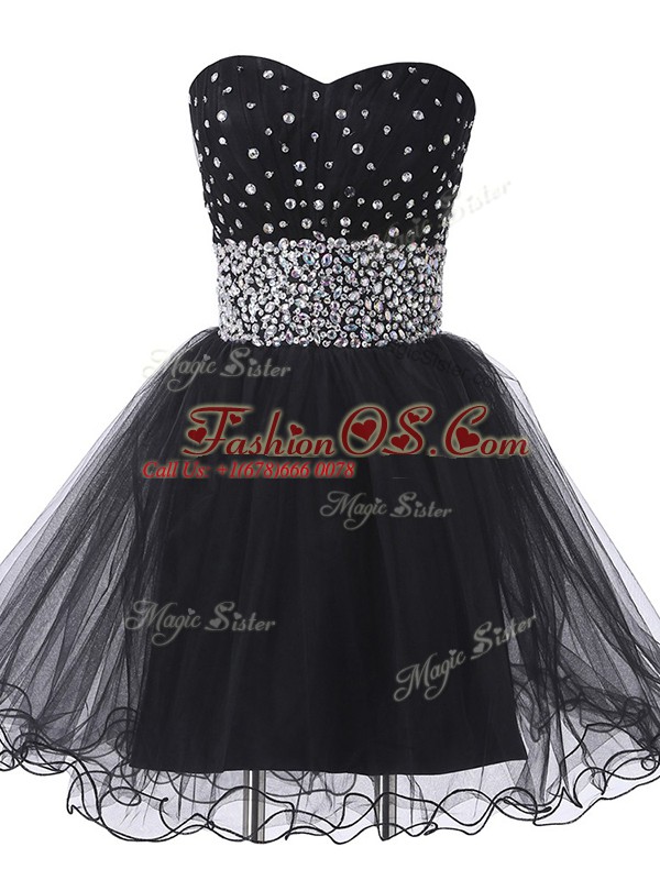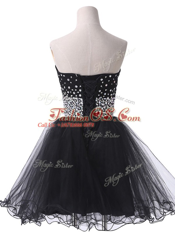 Black Sleeveless Mini Length Beading Lace Up Prom Dresses