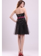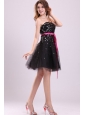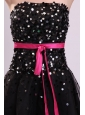 Black Strapless Prom Dress with Pink Sash and Sequins