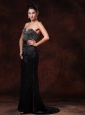 Black Sweetheart Beaded Decorate Body Stylish Celebrity Gowns Whit Brush Train For Custom Made In Opelika Alabama