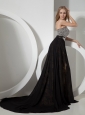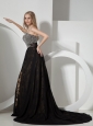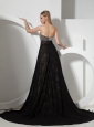 Black Sweetheart Neckline Beaded Decorate Chiffon Evening Dress With Court Train